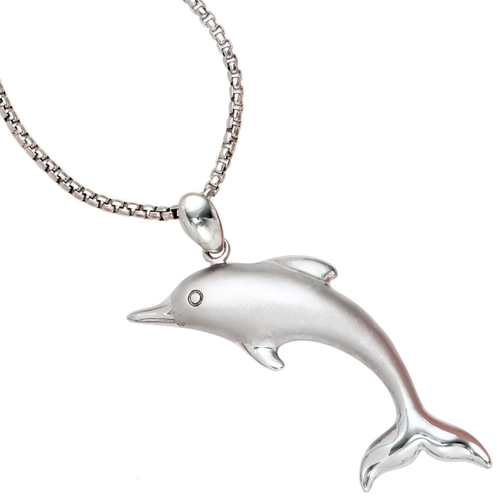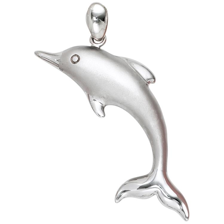 Anhänger Delfin aus 925 Sterling Silber rhodiniert mattiert