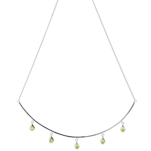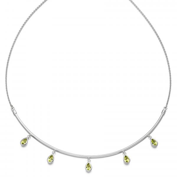 Collier / Halskette aus 14 Karat (585) Weißgold mit 5 Peridoten und Karabinerverschluss