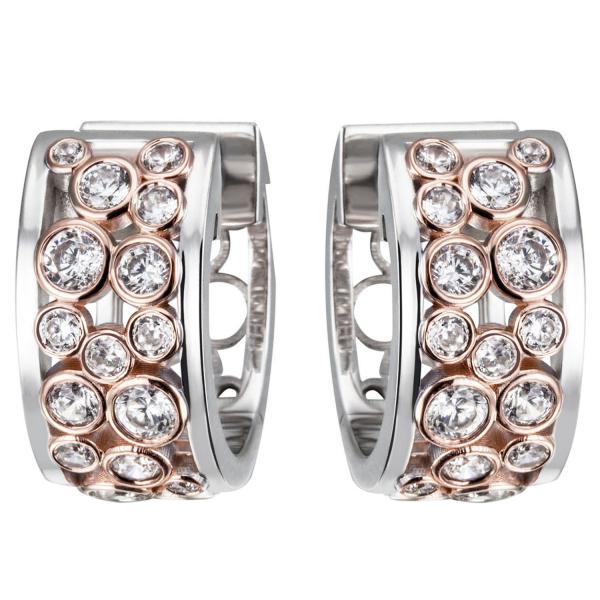 1 Paar ovale Creolen mit Klappmechanik aus 925 Sterlingsilber, rhodiniert und teilrotvergoldet, mit 36 Zirkonia