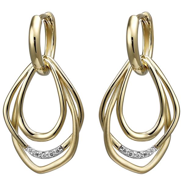 1 Paar Creolen - Ohrhänger mit Klappmechanik aus 925 Sterlingsilber, vergoldet und teilmattiert, mit 10 Zirkonia (Creolen auch ohne Einhänger zu tragen)