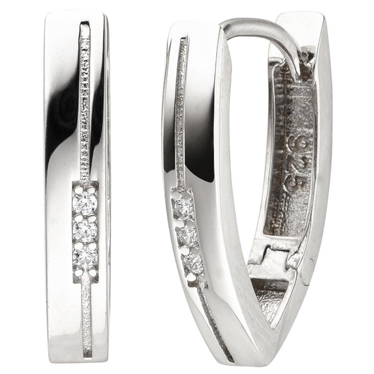 1 Paar ovale Creolen - Ohrringe mit einer Klappmechanik aus 925 Sterlingsilber, rhodiniert, anlaufgeschützt, und 6 Zirkonia.