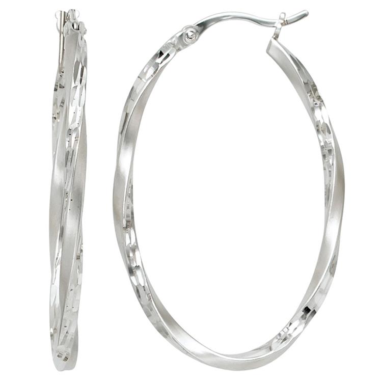 Creolen oval 925 Sterling Silber rhodiniert teilmattiert Ohrringe