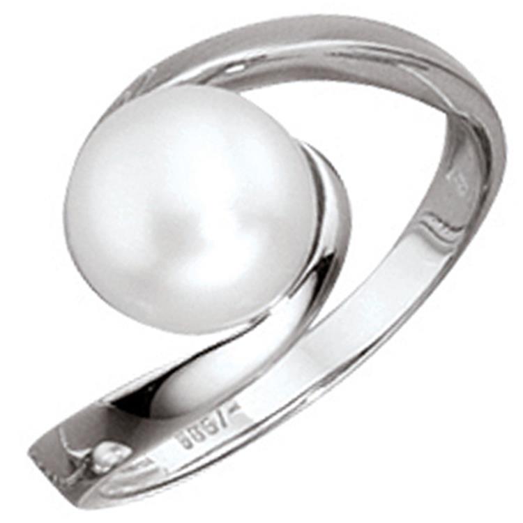 Damen Ring 333 Weißgold 1 Perle Perlenring