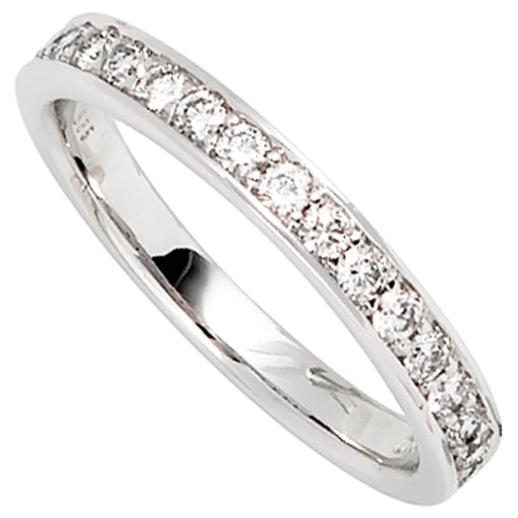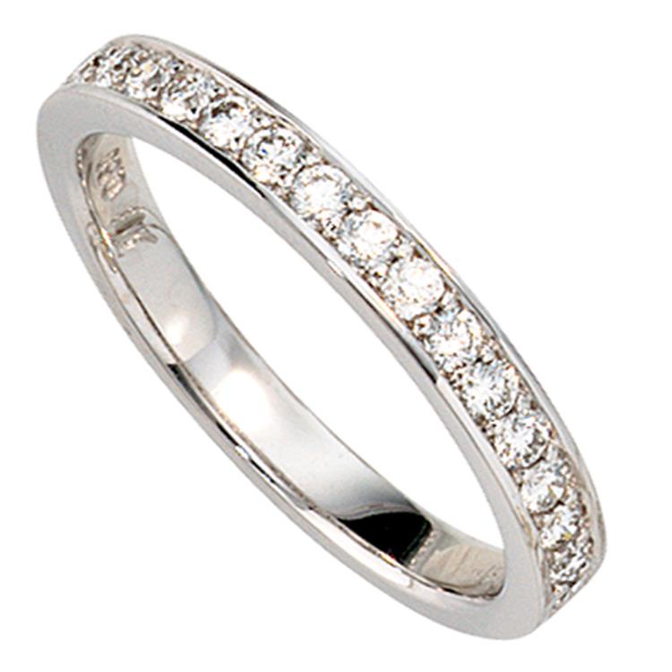Ein ca. 2,8 mm schmaler Damenring aus 14 Karat (585) Weißgold, mit 17 Diamanteb-Brillanten, 0,50 ct., W/SI wesselton (weiß), SI=(kleine, mit bloßem Auge nicht erkennbare natürliche Einschlüsse), Feinbearbeitung gut.