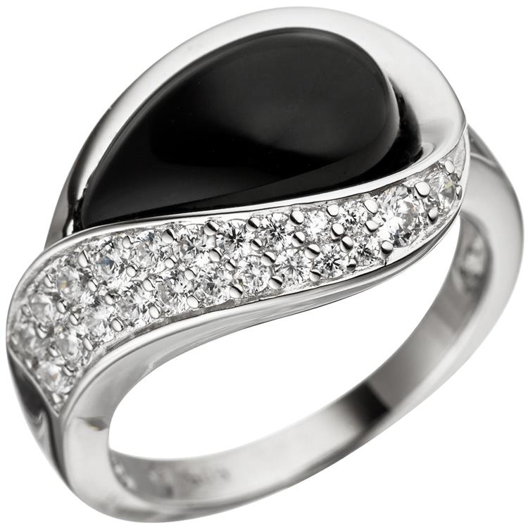 Damen Ring 925 Silber mit Zirkonia 1 Onyx schwarz Onyxring