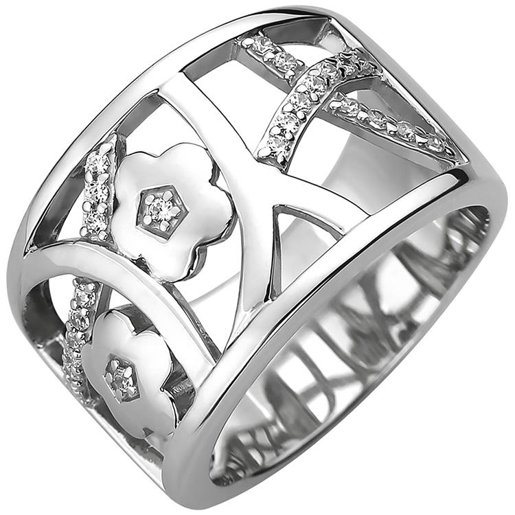 Damenring mit einer Breite von ca. 14,7 mm aus 925 Sterlingsilber, rhodiniert, mit 25 Zirkonia.