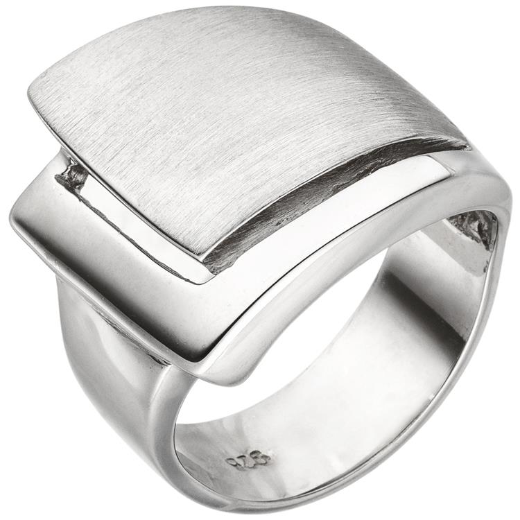 Ein ca. 18,2 mm breiter Damenring aus 925 Sterlingsilber, rhodiniert und teilmattiert.