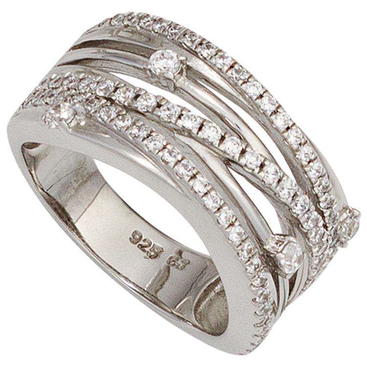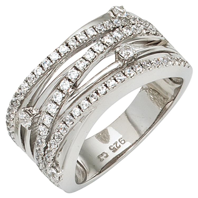 Damenring 925 Sterlingsilber, rhodiniert, mit Zirkonia und einer Breite von ca. 10,6 mm.