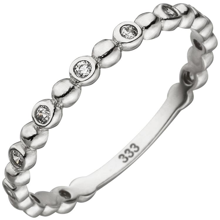 Ein ca. 2,2 mm breiter Kugel - Damenring aus 8 Karat (333) Weißgold mit 11 Zirkonia.