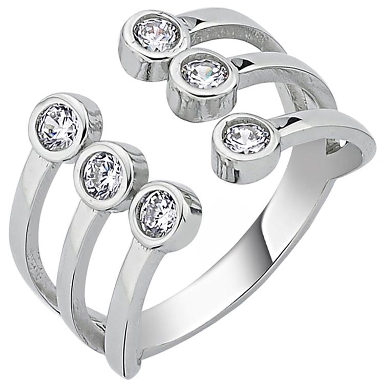 Startseite » Ringe » Ringe aus Silber in verschiedenen Farben und Formen » Damen Ring offen 925 Sterling Silber 6 Zirkonia