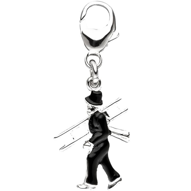 Einhänger / Charm "Schornsteinfeger" aus 925 Sterlingsilber, rhodiniert, mit schwarzer Lackeinlage und Karabinerverschluss