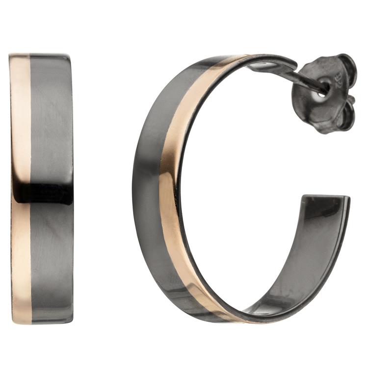 1 Paar Halbcreolen - Ohrringe aus 925 Sterlingsilber, schwarz rhodiniert und teilrotvergoldet.