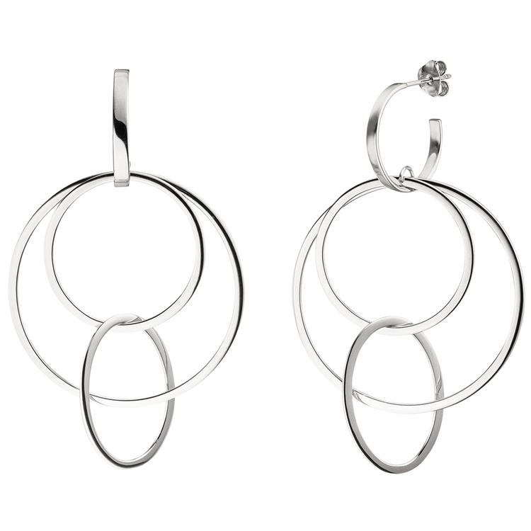1 Paar ca. 69,6 mm große Halbcreolen - Ohrringe mit Ringen aus 925 Sterlingsilber, rhodiniert.