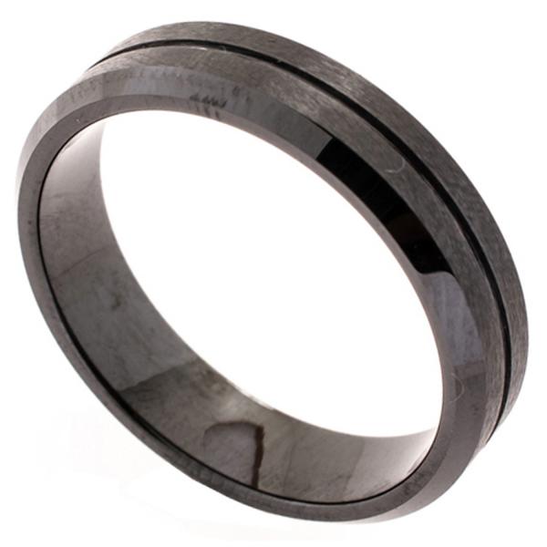 Ein ca. 5,9 mm breiter Herrenring aus Edelstahl, teilmattiert, mit einer schwarzen PVD-Beschichtung.