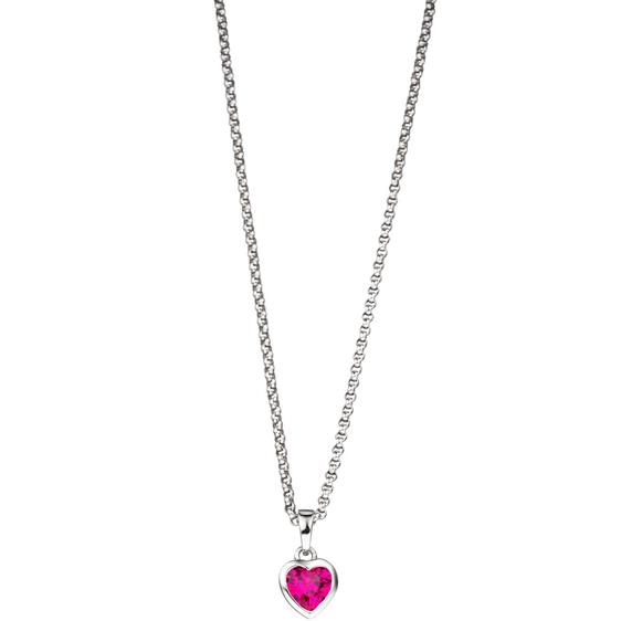 Ein ca. 9,4 mm großer Kinder-Anhänger in Herz Form aus 925 Sterlingsilber, rhodiniert, anlaufgeschützt, mit einem pinkfarbenen Zirkonia.