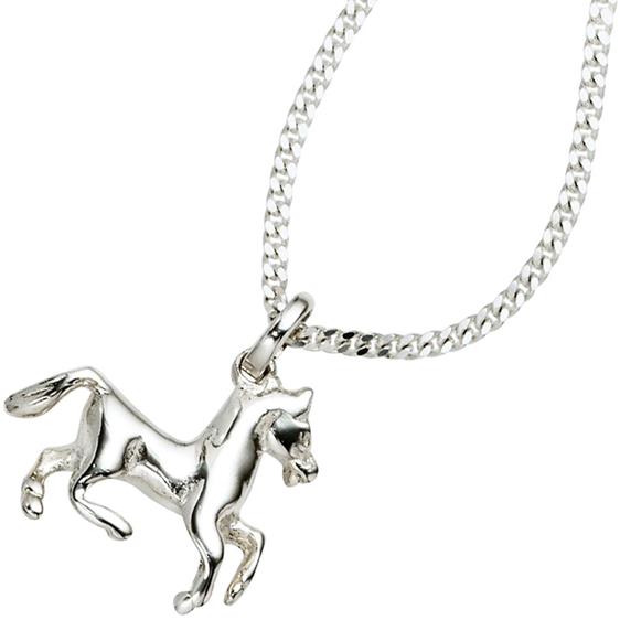 Ein ca. 18 mm breiter Kinder Anhänger 'Pferd' ohne Kette aus 925 Sterlingsilber.