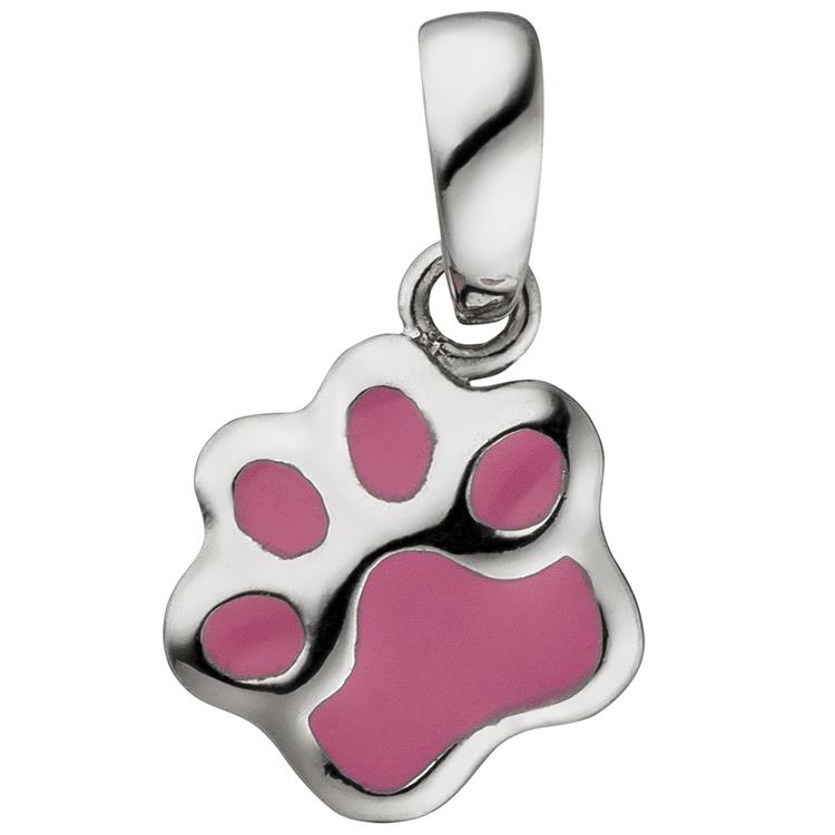 Kinder Anhänger Pfote 925 Sterling Silber pink lackiert
