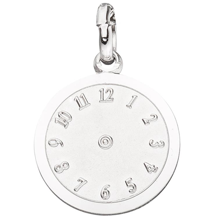 Ein Kinder Anhänger "Taufuhr" mit einem Durchmesser von ca. 12,5 mm aus 925 Sterlingsilber, rhodiniert, teilmattiert (ohne Kette).