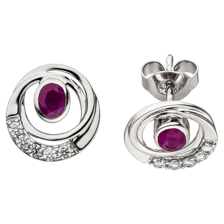 1 Paar Ohrstecker aus 9 Karat (375) Weißgold mit 2 Rubinen und 10 Zirkonia