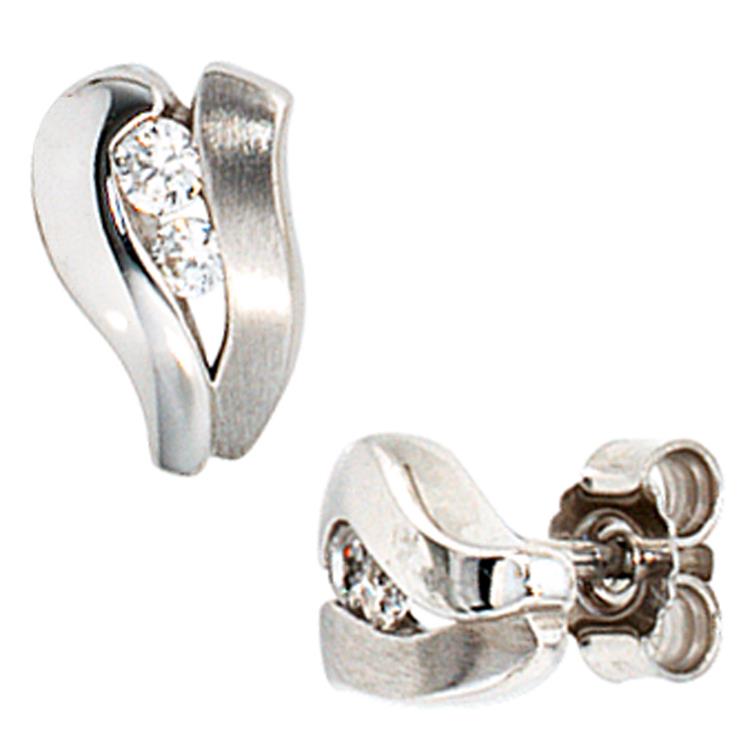 1 Paar ca. 9,1 mm große Ohrstecker - Ohrringe aus 9 Karat (375) Weißgold, teilmattiert, mit 4 Zirkonia.