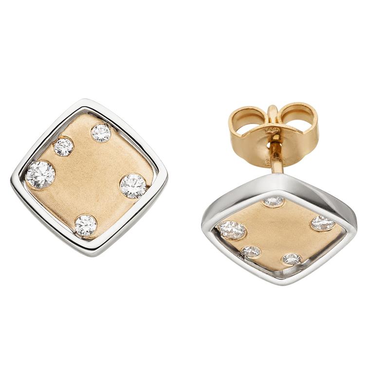 1 Paar Ohrstecker - Ohrringe aus 9 Karat (375) Gold, Weißgold mit Rotgold kombiniert, teilmattiert, mit 10 Zirkonia.