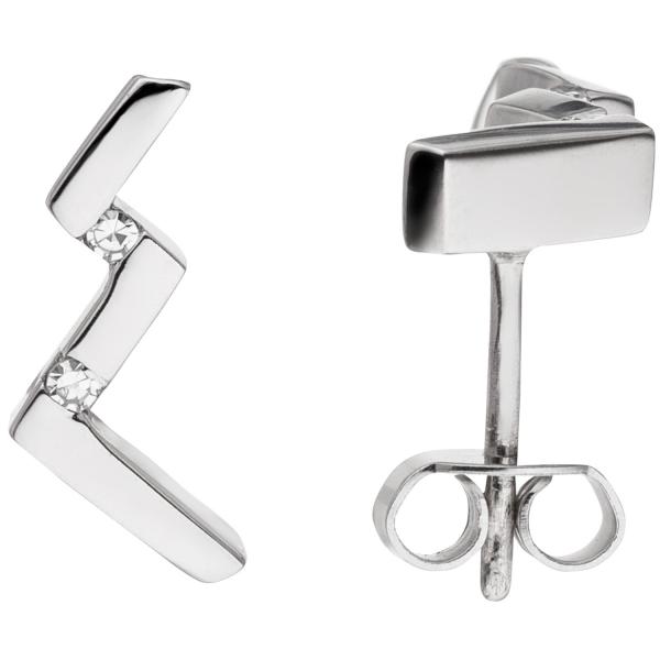 1 Paar ca. 14,7 mm große Ohrstecker - Ohrringe aus 925 Sterlingsilber, mit 4 Diamanten-Brillanten, 0,04 ct., W/SI wesselton (weiß), SI=(kleine, mit bloßem Auge nicht erkennbare natürliche Einschlüsse), Feinbearbeitung gut