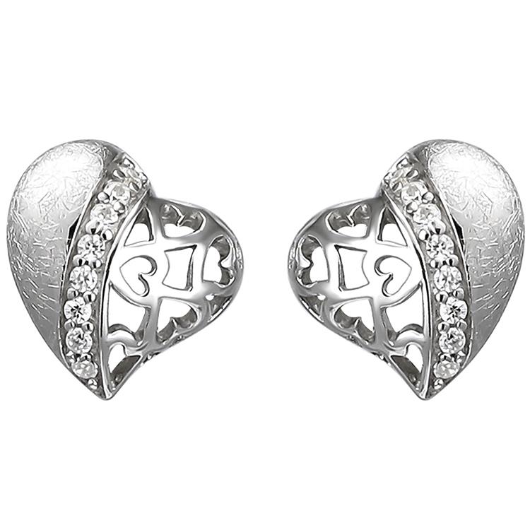 1 Paar Ohrstecker "Herz" aus 925 Sterlingsilber, rhodiniert und teileismatt, mit 16 Zirkoni