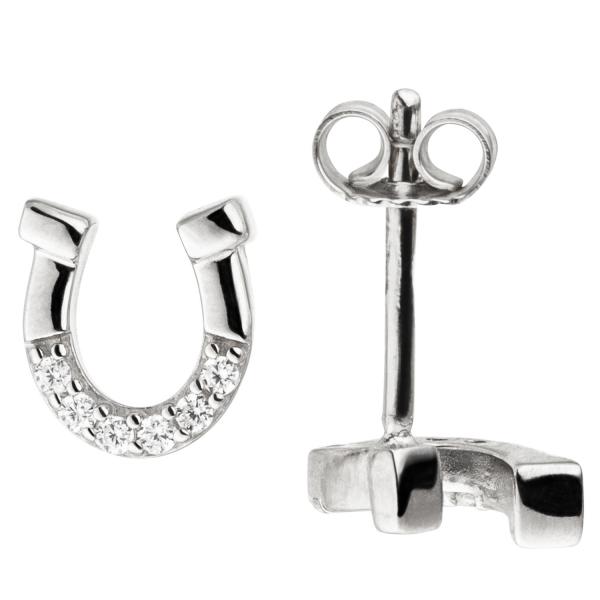 1 Paar Ohrstecker - Ohrringe 'Hufeisen' aus 925 Sterling Silber, rhodiniert, mit 12 Zirkonia.