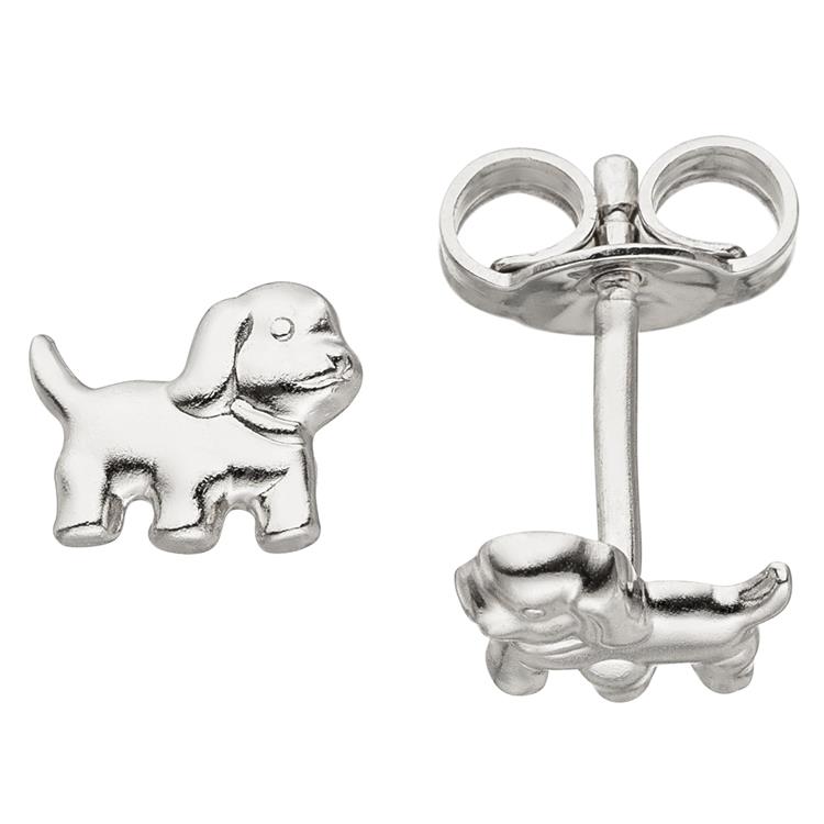 1 Paar ca. 6,6 mm große Ohrstecker - Ohrringe 'Hund' aus 925 Sterlingsilber, rhodiniert.