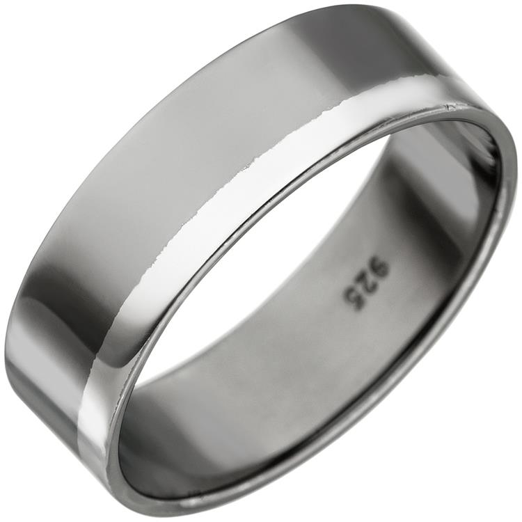 Ein ca. 6,9 mm breiter Ring aus 925 Sterlingsilber, rhodiniert, schwarz (anthrazit) teilrhodiniert.