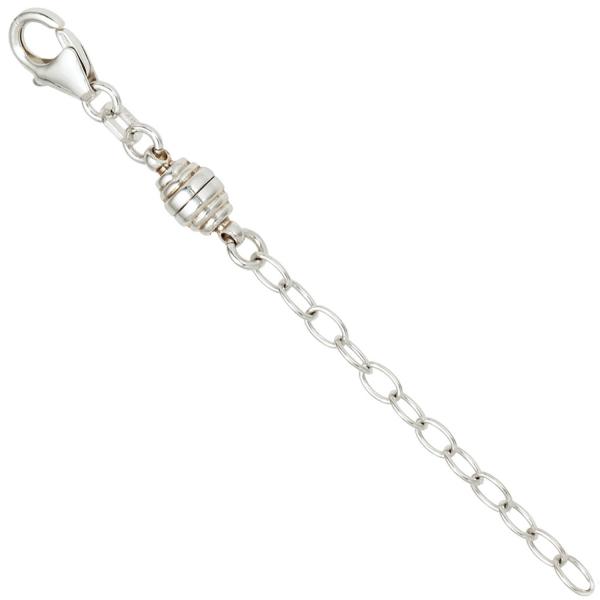Verlängerungskettchen aus 925 Sterling Silber, rhodiniert, mit Karabinerverschluss und Magnet-Verschluss.