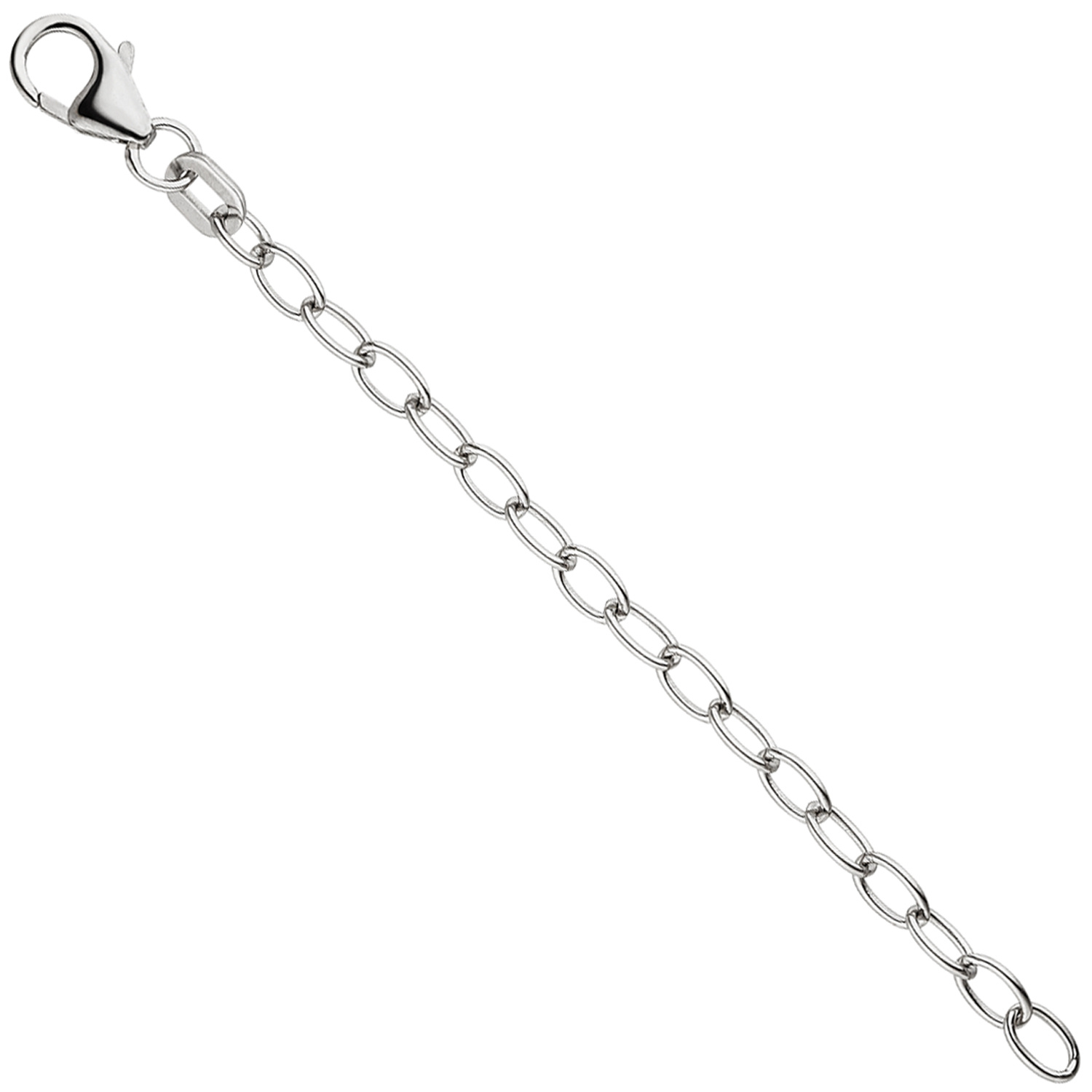 Ein ca. 7 cm langes Verlängerungskettchen aus 925 Sterling Silber, rhodiniert, mit Karabinerverschluss.
